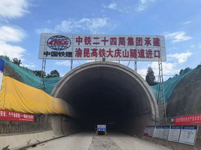 大慶山隧道位于云南省昆明市,全長(zhǎng)4976米,為單洞雙線隧道,由中鐵二十四局承建。隧道穿越巖溶、路基順層和厚層坡積土等多種復(fù)雜地質(zhì)條件。隧道還上跨滬昆高鐵和銀昆高速公路。與滬昆高鐵最短距離僅有15米,兩條高鐵結(jié)構(gòu)距離之近,國(guó)內(nèi)罕見。
