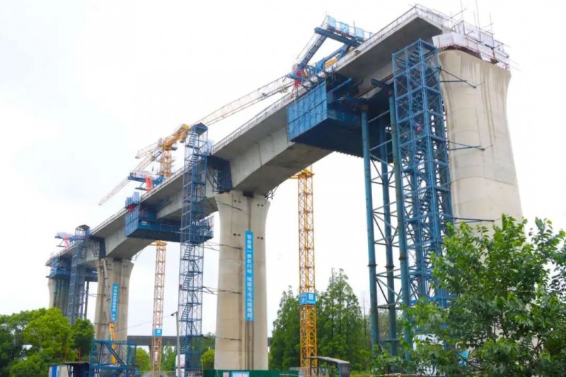 川沙特大橋跨奚陽公路連續(xù)梁位于浦東新區(qū)合慶鎮(zhèn),梁長113.1米,共31個節(jié)段??缛A夏東路北匝道連續(xù)梁也位于合慶鎮(zhèn),是華夏東路高架區(qū)域三連跨中首個合龍的連續(xù)梁,橋面寬12.1米,梁全長137.2米,采用懸臂澆筑工藝施工。