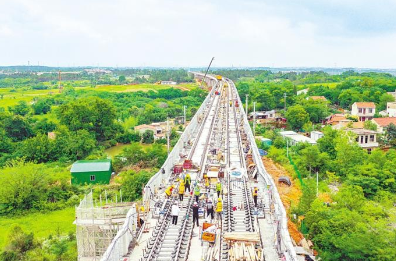 6月11日,在武漢市黃陂區(qū)武漢地鐵前川線二期項(xiàng)目施工現(xiàn)場,工人們正在對鋪設(shè)完成的軌道進(jìn)行勘測調(diào)試,各項(xiàng)施工有序進(jìn)行。當(dāng)日,隨著最后一節(jié)鋼軌安裝完成,前川線二期工程順利實(shí)現(xiàn)全線軌通。據(jù)介紹,前川線二期工程由黃陂廣場站至橫店站(不含),線路全長15.35公里。