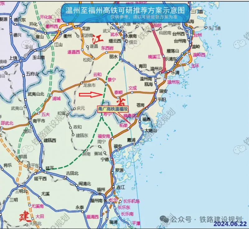 據(jù)了解,溫武吉鐵路已列入國家鐵路網(wǎng)規(guī)劃,并開展了相關(guān)前期設(shè)計(jì)等工作,寧麗鐵路目前還尚未列入國家鐵路網(wǎng)規(guī)劃(時(shí)速預(yù)計(jì)為350km/h)。