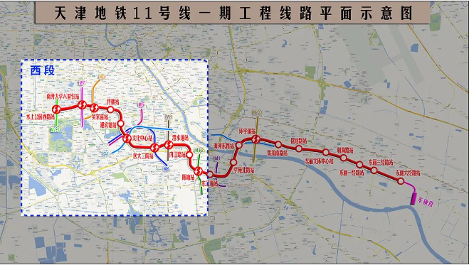 西段建成通車后可與已開通運營的東段相接,實現(xiàn)地鐵11號線一期全線通車,有效連通中心城區(qū)與海河中游地區(qū),對于中心城區(qū)、海河中游地區(qū)乃至天津市軌道交通系統(tǒng)規(guī)劃以及城市發(fā)展戰(zhàn)略的實現(xiàn)都有非常重大的意義。