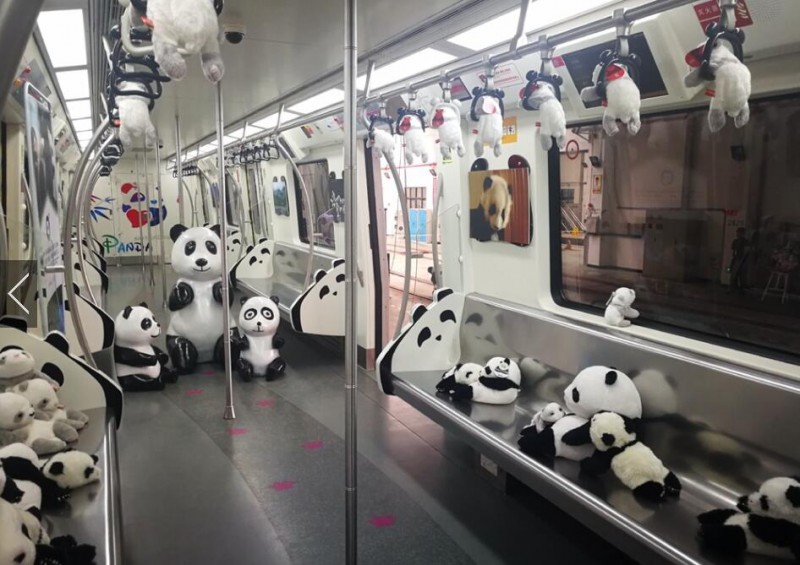 記者了解到,此次活動在“盼達(dá)號”上增添了更豐富的熊貓元素,整個車體劃分為“熊貓故鄉(xiāng)”“大熊貓節(jié)及往屆回顧”“康養(yǎng)汶川”“汶川生態(tài)旅游”等主題車廂,座位上“坐著”可愛的熊貓雕塑玩偶和汶川特色產(chǎn)品,展板上還有萌萌的大熊貓圖片及汶川美圖,加上地鐵電視滾動播出的特色紀(jì)錄片,讓人們仿佛置身于汶川新城。