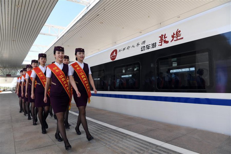 敦煌開通動(dòng)車組列車,打通了敦煌與蘭新高鐵的“最后一公里”,擴(kuò)大了蘭新高鐵通道對西部縱深地區(qū)的覆蓋度,為蘭州、西安等方向的動(dòng)車組直達(dá)敦煌創(chuàng)造了條件,優(yōu)化了區(qū)域交通條件,也為敦煌這座絲路重鎮(zhèn)提供了更高質(zhì)量的游客運(yùn)輸服務(wù)。
