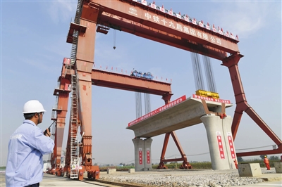 9月20日,在朝陽大凌河特大橋施工現(xiàn)場,900噸重的雙線箱梁穩(wěn)穩(wěn)落在橋墩上。朝陽至凌海高鐵第一道箱梁完成架設(shè),標志著朝凌高鐵橋梁施工建設(shè)進入關(guān)鍵階段。