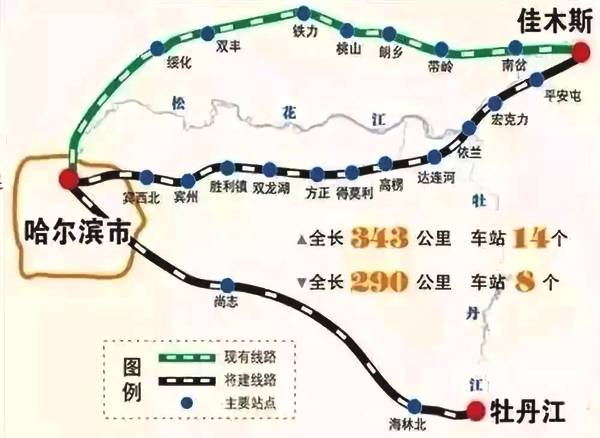 哈佳鐵路位于黑龍江省中東部,西起哈爾濱市,途經(jīng)賓縣、方正、依蘭三縣,終到佳木斯市,線路全長(zhǎng)344公里,設(shè)計(jì)時(shí)速200公里,全線共設(shè)哈爾濱、太平橋、賓西北、賓州、勝利鎮(zhèn)、方正、得莫利、依蘭、佳木斯等19 座車站。開通初期,將安排開行哈爾濱西至佳木斯動(dòng)車組列車13對(duì),哈爾濱至佳木斯間最快客車旅行時(shí)間將由原來(lái)的5小時(shí)44分縮短至2小時(shí)3分。