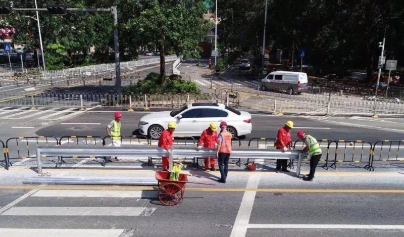 在經(jīng)受住了最強風王“山竹”的考驗后,回龍埔站各項恢復工作有條不紊,為盡快恢復施工生產(chǎn)正常有序的號召,項目部組織員工第一時間清理現(xiàn)場,在通過復工前安全檢查后,迅速恢復生產(chǎn),加大資源投入,把握有利時機,在臺風過境兩天的時間內(nèi),同步完成標線規(guī)劃、標識標牌、護欄安裝等多項工作,并于9月18日夜間順利實現(xiàn)回龍埔站主體工程交通疏解,這一節(jié)點目標的完成,代表著回龍埔站前期工程建設取得了階段性的勝利。