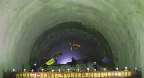 10月9日,中鐵一局五公司鄭萬高鐵二分部新華隧道出口與5#橫洞輔助正洞大里程順利貫通,標(biāo)志著新華隧道掘進(jìn)取得階段性勝利。