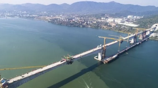 由中鐵大橋局承建的崔家營漢江特大橋,全長13013米,是漢十高鐵跨越漢江的關(guān)鍵控制性工程,設(shè)計(jì)時(shí)速達(dá)350公里。這座大橋需跨越襄陽城區(qū)的飲用水源區(qū),兼顧水質(zhì)保護(hù)、通航行洪需求,大橋跨度設(shè)計(jì)為300米,建成后將成為世界上最大跨度連續(xù)剛構(gòu)拱橋。