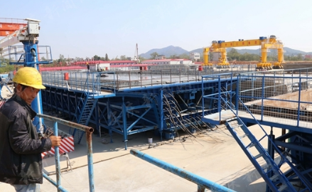 宿松制梁場主要承擔橫山特大橋、跨省道S212特大橋、宿松東站大橋、宿松東站中橋、二郎河特大橋和碧嶺村特大橋,6座橋598孔箱梁預制任務。預計本月底,安九鐵路安徽段將架設第一榀箱梁。