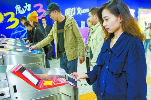 10月15日,長沙地鐵1號(hào)線黃興廣場(chǎng)站,市民在配備互聯(lián)網(wǎng)售檢票系統(tǒng)的閘機(jī)口刷手機(jī)出站。目前,長沙地鐵互聯(lián)網(wǎng)售檢票系統(tǒng)進(jìn)入公測(cè)階段,市民可下載“長沙地鐵”App購票,然后用二維碼刷碼過閘。該系統(tǒng)公測(cè)將于20日結(jié)束,調(diào)試完善后,年內(nèi)可正式投入使用。