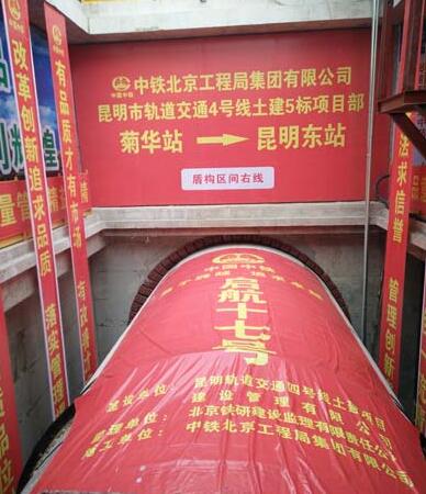 “現(xiàn)在我宣布,昆明市軌道交通4號(hào)線土建5標(biāo)項(xiàng)目菊花站至昆明東站區(qū)間右線盾構(gòu)掘進(jìn)開始實(shí)施?!?月8日上午9時(shí)許,隨著中鐵北京工程局集團(tuán)有限公司昆明軌道交通4號(hào)線土建5標(biāo)項(xiàng)目部盾構(gòu)分部經(jīng)理李凱的一聲令下,昆明東站盾構(gòu)井里的“啟航十七號(hào)”盾構(gòu)機(jī)刀盤轟然啟動(dòng),猶如一條盤龍朝著目標(biāo)旋轉(zhuǎn)推進(jìn),這標(biāo)志著米軌停運(yùn)后的土建標(biāo)段首臺(tái)盾構(gòu)機(jī)掘進(jìn)施工正式拉開大幕。