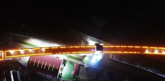 10月24日凌晨1時45分,由在漢央企中交二航局承建的國內(nèi)鐵路最大縱坡最大偏心曲線轉(zhuǎn)體斜拉橋在30米高空成功轉(zhuǎn)體17度,實現(xiàn)了對徐蘭高鐵的完美跨越。