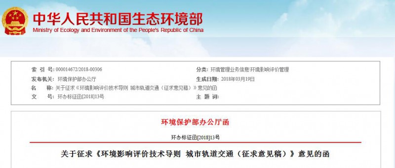 為進(jìn)一步完善環(huán)境影響評(píng)價(jià)導(dǎo)則體系,強(qiáng)化城市軌道交通影響評(píng)價(jià)技術(shù)要求,充分發(fā)揮環(huán)境影響評(píng)價(jià)從源頭預(yù)防環(huán)境污染和生態(tài)破壞的作用,我部決定修訂《環(huán)境影響評(píng)價(jià)技術(shù)導(dǎo)則 城市軌道交通(征求意見稿)》(以下簡(jiǎn)稱《導(dǎo)則》)。目前,《導(dǎo)則》編制單位已完成征求意見稿。為進(jìn)一步做好編制工作,根據(jù)國(guó)家環(huán)境保護(hù)標(biāo)準(zhǔn)制修訂工作管理規(guī)定,現(xiàn)就該《導(dǎo)則》征求意見稿征求你單位意見,請(qǐng)于2018年4月26日前通過信函或電子郵件方式將意見反饋我部,逾期未反饋意見的將按照無意見處理。標(biāo)準(zhǔn)征求意見稿及編制說明可登錄我部網(wǎng)站(http://www.mep.gov.cn/)“意見征集”欄目檢索查閱。