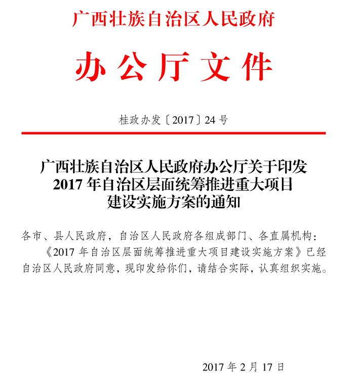 3月19日獲悉,廣西自治區(qū)發(fā)改委發(fā)布《關(guān)于印發(fā)2018年自治區(qū)層面統(tǒng)籌推進重大項目建設(shè)實施方案的通知》。