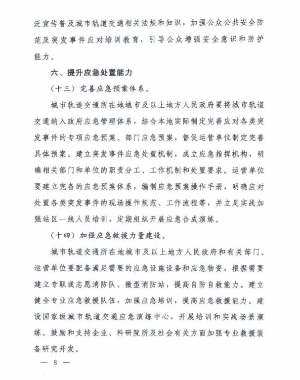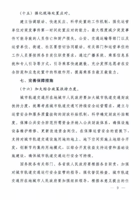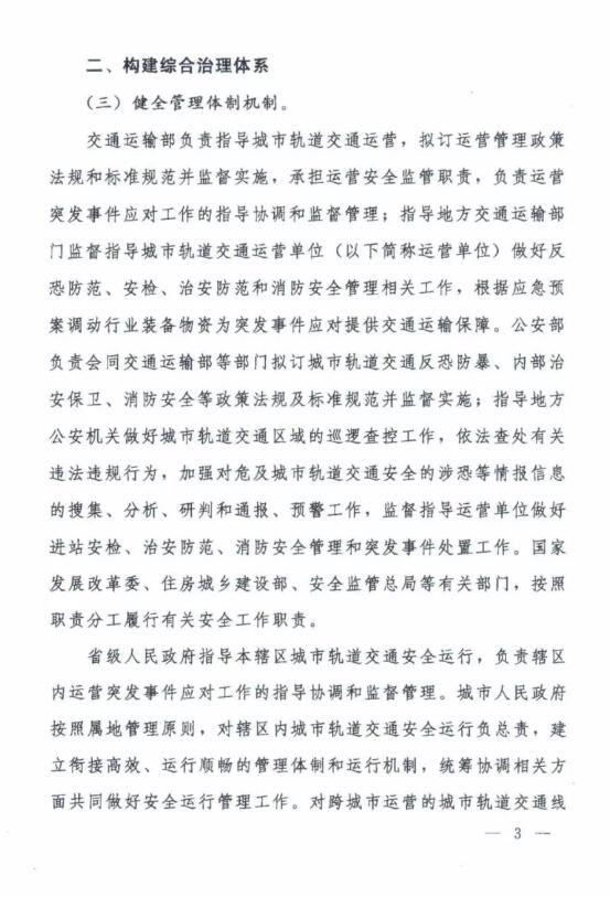 近日獲悉,交通運輸部負(fù)責(zé)指導(dǎo)城市軌道交通運營,擬訂運營管理政策法規(guī)和標(biāo)準(zhǔn)規(guī)范并監(jiān)督實施,承擔(dān)運營安全監(jiān)管職責(zé),負(fù)責(zé)運營突發(fā)事件應(yīng)對工作的指導(dǎo)協(xié)調(diào)和監(jiān)督管理;公安部負(fù)責(zé)會同交通運輸部等部門擬訂城市軌道交通反恐防暴、內(nèi)部治安保衛(wèi)、消防安全等政策法規(guī)及標(biāo)準(zhǔn)規(guī)范并監(jiān)督實施。