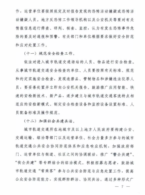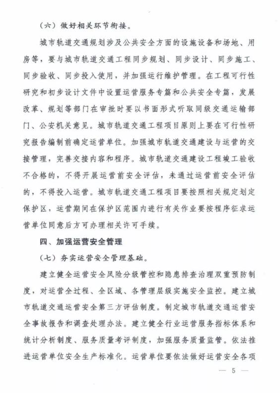 城市軌道交通規(guī)劃涉及公共安全方面的設(shè)施設(shè)備和場地、用房等,要與城市軌道交通工程同步規(guī)劃、同步設(shè)計、同步施工、同步驗收、同步投入使用,并加強運行維護管理。在工程可行性研究和初步設(shè)計文件中設(shè)置運營服務(wù)專篇和公共安全專篇,發(fā)展改革、規(guī)劃等部門在審批時要以書面形式聽取同級交通運輸門、公安機關(guān)意見。城市軌道交通工程項目原則上要在可行性研究報告編制前確定運營單位。