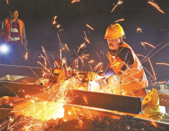 本次施工在衢寧鐵路鋪架工程開工前實施,主要目的是為鋪設(shè)并開通工程線形成衢寧鐵路鋪架運輸通道,確保衢寧鐵路的鋪架施工有序進行。圖為作業(yè)人員對合龍口鋼軌進行切除。