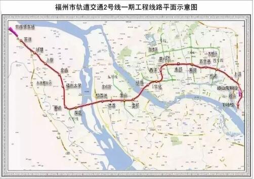 地鐵2號線線路全長約30.623公里,共設22座車站,沿線為東西方向,途經(jīng)閩江、烏龍江。