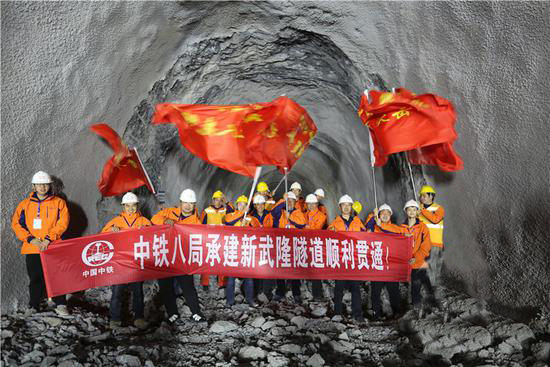 中鐵八局一公司的建設者們經過3年多的努力,通過“河里打洞,洞中架橋”的方式,解決了施工難題。11月9日,渝懷二線涪秀段新武隆隧道成功貫通,隨著兩端施工面的建設者匯合,隧道里傳來陣陣歡呼聲。