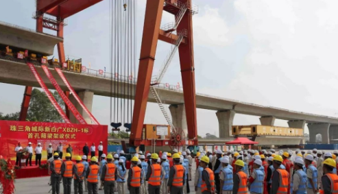 11月11日,由鐵建總承包施工的珠三角城際新白廣鐵路1標(biāo),自新白廣黃埔梁場向白云機(jī)場方向,進(jìn)行首片梁架設(shè)。全線預(yù)制架設(shè)箱梁共計(jì)863孔。預(yù)計(jì)2020年通車,屆時(shí),從新塘站至白云機(jī)場僅需20分鐘,從廣州北站至白云機(jī)場僅需7分鐘。