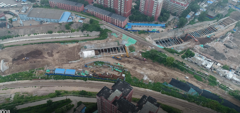 據(jù)介紹,太原鐵路樞紐西南環(huán)線東晉隧道明挖段起點位于太原西站南咽喉,全長746米。隧道設(shè)計采用雙線單孔結(jié)構(gòu),直墻拱頂形式,雙線間距4至5米,挖深20米,覆土深度7米。施工地段地質(zhì)復(fù)雜,地下水體豐富,開挖斷面大,地表臨近居民小區(qū)、華嚴寺等人員和建筑物密集區(qū)域,地下管線密布,安全風(fēng)險、施工組織、協(xié)調(diào)難度大,技術(shù)要求標準高。