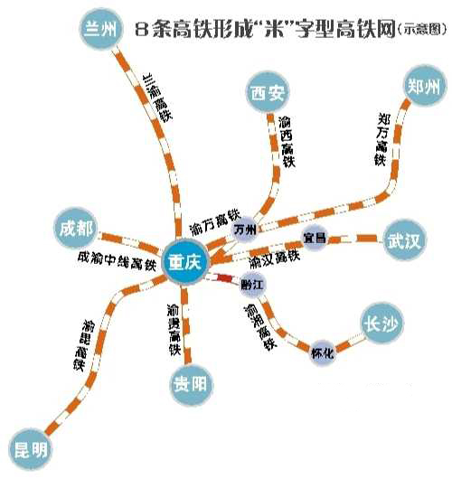 為此,重慶加快構(gòu)建米字型高鐵網(wǎng),努力建設(shè)國家綜合性鐵路樞紐和國際性綜合交通樞紐。
