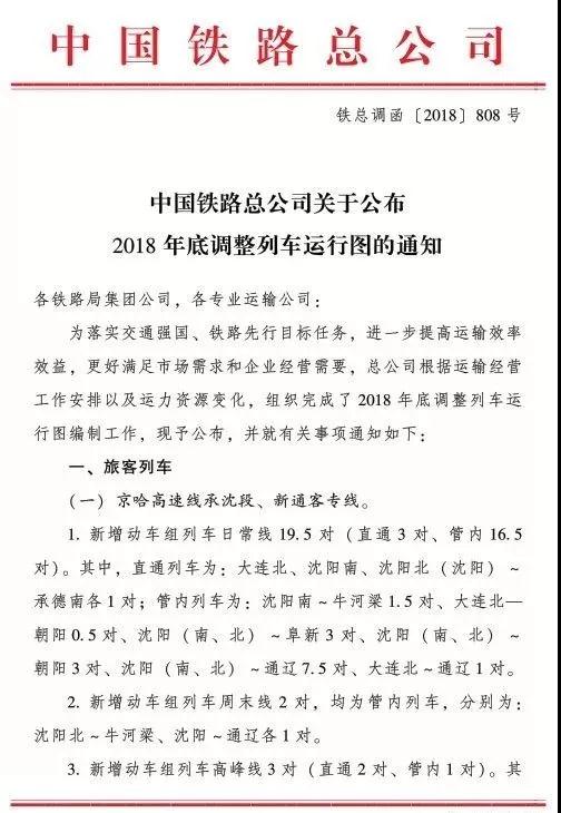 鐵路總公司11月23日發(fā)布《2018年底調(diào)整列車運(yùn)行圖的通知》,該通知共計(jì)345頁(yè),小編截取了其中有關(guān)于沈陽(yáng)的部分,供大家閱覽。