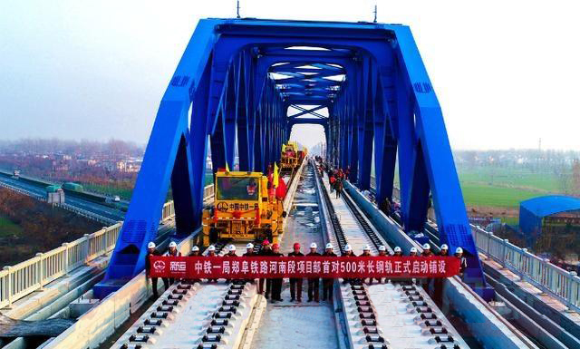 中鐵一局承擔(dān)著鄭阜鐵路全線570.1235公里長軌鋪設(shè)施工任務(wù),其中正線鋪軌536.7455公里,站線鋪軌33.378公里;新鋪道岔151組,包含有砟道岔55組、無砟道岔96組。