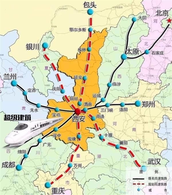 未來,西安將建成“米字型”高鐵網(wǎng),與蘭州、鄭州、太原、延安、銀川、成都、重慶、武漢直接通達。