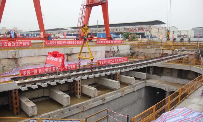 3月14日,在地鐵八號(hào)線北延段滘心鋪軌基地內(nèi),隨著兩臺(tái)10噸的龍門(mén)吊吊起第一節(jié)軌排,緩緩移到軌排井上空,慢慢落到軌道線路上,八號(hào)線北延段同福西至滘心段宣告正式進(jìn)入鋪軌階段。為了最大限度降低施工對(duì)周邊的影響,八號(hào)線北延段主要沿道路敷設(shè),并在軌道行經(jīng)的學(xué)校、醫(yī)院、社區(qū)等敏感區(qū)域采用減振降噪技術(shù),努力為周邊市民創(chuàng)造一個(gè)良好的環(huán)境。